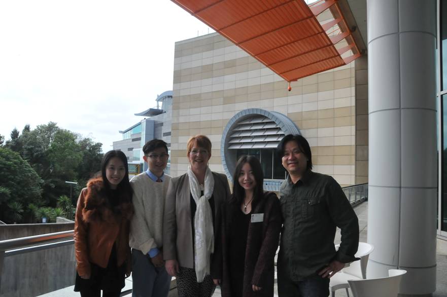 (图:惠灵顿市市长Celia Wade-Brow接见我校获奖师生。左起:马玉儒、杨上、Celia Wade-Brow、吴攸攸、周洪雷)