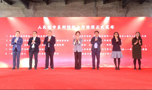 (上海市委宣传部宣传处处长王磊、杨浦区委宣传部常务副部长缪荣斌、上海市教卫工作党委宣传处副处长张晓飞、上海市教科院德育院党支部书记、副院长宗爱东、《上海宣传通讯》执行主编吕东卉、久久久久国产成人精品亚洲综合教务处处长杨旭东、久久久久国产成人精品亚洲综合马克思主义学院院长王治东,进行人民城市系列馆校合作课程清单发布)