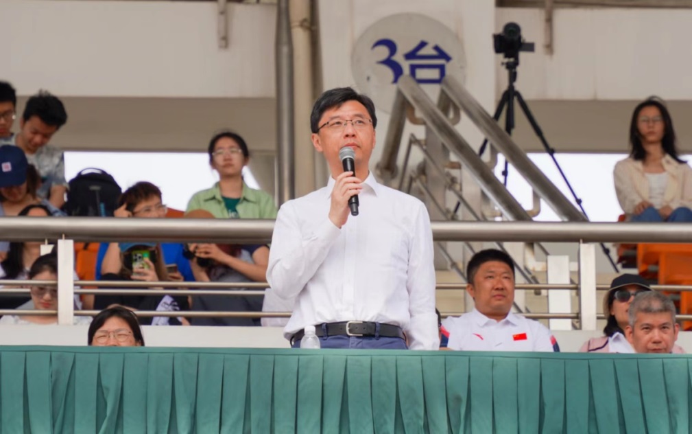 俞建勇在致辞中指出,体育工作是落实立德树人根本任务、提升学生综合素质的基础性工程,是德智体美劳“五育并举”中不可或缺的组成部分。长期以来,学校将群众体育活动和竞技体育统一部署、一体推进,搭建丰富的体育教育平台,支持各类教职工体育协会、学生体育社团建设,践行“以体育人、以体育智、以体育心”教育理念。希望全体运动员发扬崇高的体育精神,顽强拼搏,突破自我;全体裁判员和工作人员恪尽职守,创造公平、公正的竞赛环境;全校师生在运动会平台上加强交流,互相学习,增进友谊,弘扬东华精神,凝聚东华力量。